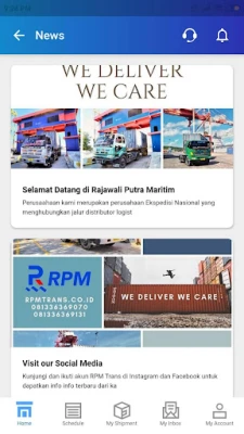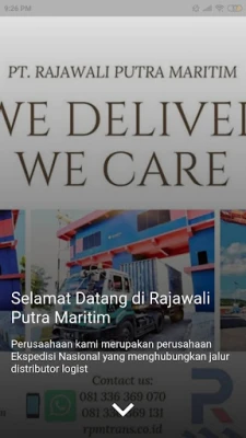 RPM Trans adalah Tracking Application pengiriman barang bagi pelanggan dari PT. Rajawali Putra Maritim. Melalui aplikasi ini pelanggan dapat mengetahui status pengiriman barang, status kontainer, dan tagihan yang dimiliki oleh pelanggan. Selain itu, pada aplikasi ini terdapat pula fitur fitur yang dapat memudahkan pelanggan untuk mendapatkan informasi perihal jadwal keberangkatan kapal, notifikasi, dan melakukan chat kepada admin RPM.