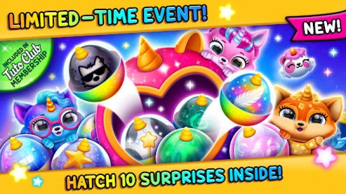 Hatch every pet from a surprise egg! Just pop two cute Fluvsies into a magical merging machine, and voila – a brand-new egg is ready to hatch! Grow your virtual pet, care for him, and play cute animal games together!