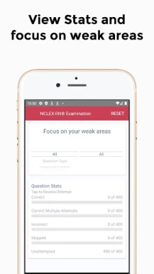 - The app tracks metrics on attempted questions so you can focus on your "Knowledge" gaps