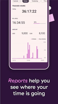 You can track time by projects, clients, or tasks and see how your workday breaks down into hours and minutes your reports. Find out what’s making you money, and what’s holding you back.