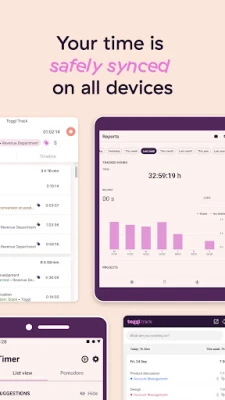 We also have you covered across all of your devices! Start tracking your hours in a browser, then stop it later on your phone. All of your tracked time is safely synced between your phone, desktop, web and a browser extension.